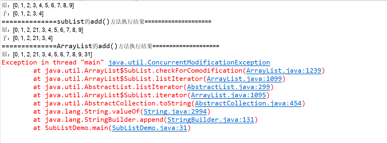 首先通过一个例子,初步了解subList的用法和易出错的地方:1